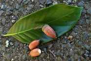 ・シラカシの実はアラカシに比べると細長くて小ぶりな物が多い。