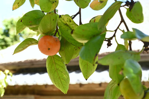 ・中国を原産とするカキノキ科の落葉樹。奈良時代以前に日本へ渡来し、野生化したものが本州~九州の山地に見られる。天高い秋の青空に映える朱色の果実には、カロチンやビタミンが豊富に含まれており食用される。