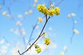 ・中国中部を原産とするロウバイ科の落葉低木。江戸時代初期、後水尾天皇の時代(1611~1629年)に朝鮮半島を経由して日本へ渡来し、観賞用として庭園や公園に植栽される。黄色いウメと勘違いされやすいがウメの仲間(バラ科)ではない。